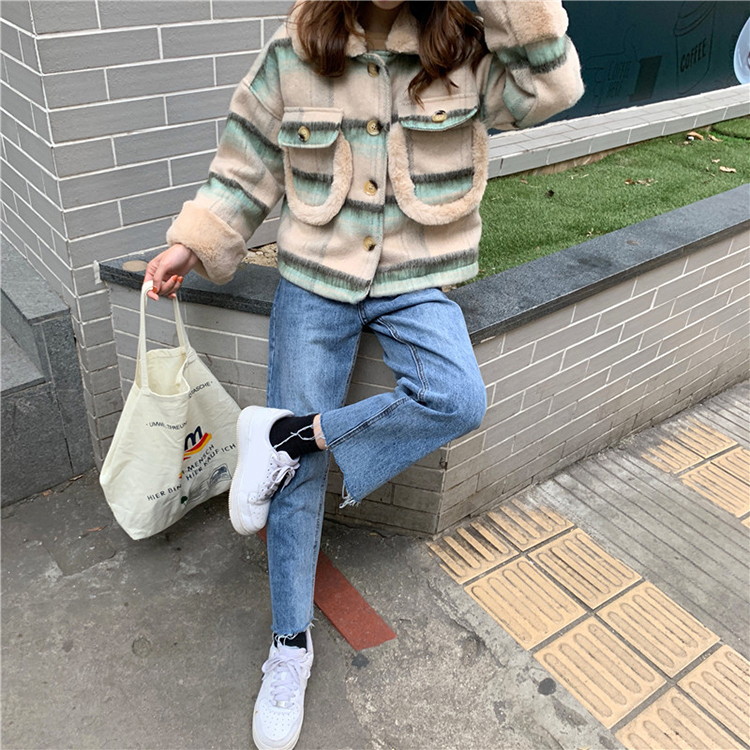 主張しすぎない大きめのチェック柄と肩の落ちたゆったりシルエットが魅力★