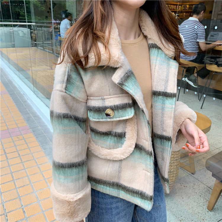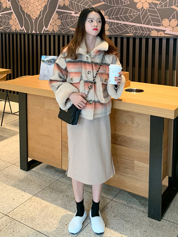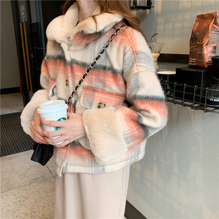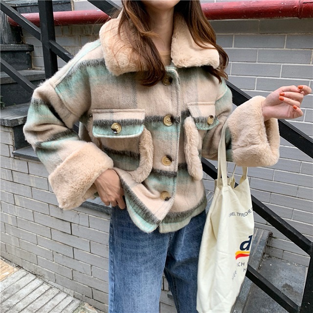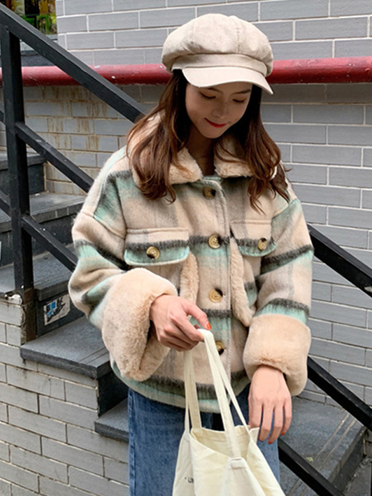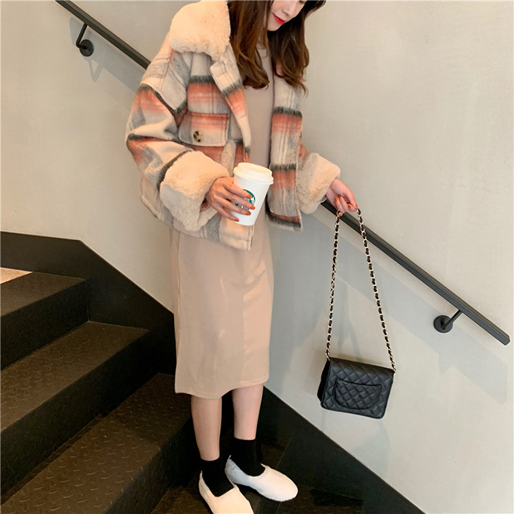 襟元と袖口には毛足の短めのファーがあしらわれ、華やかさもプラス!