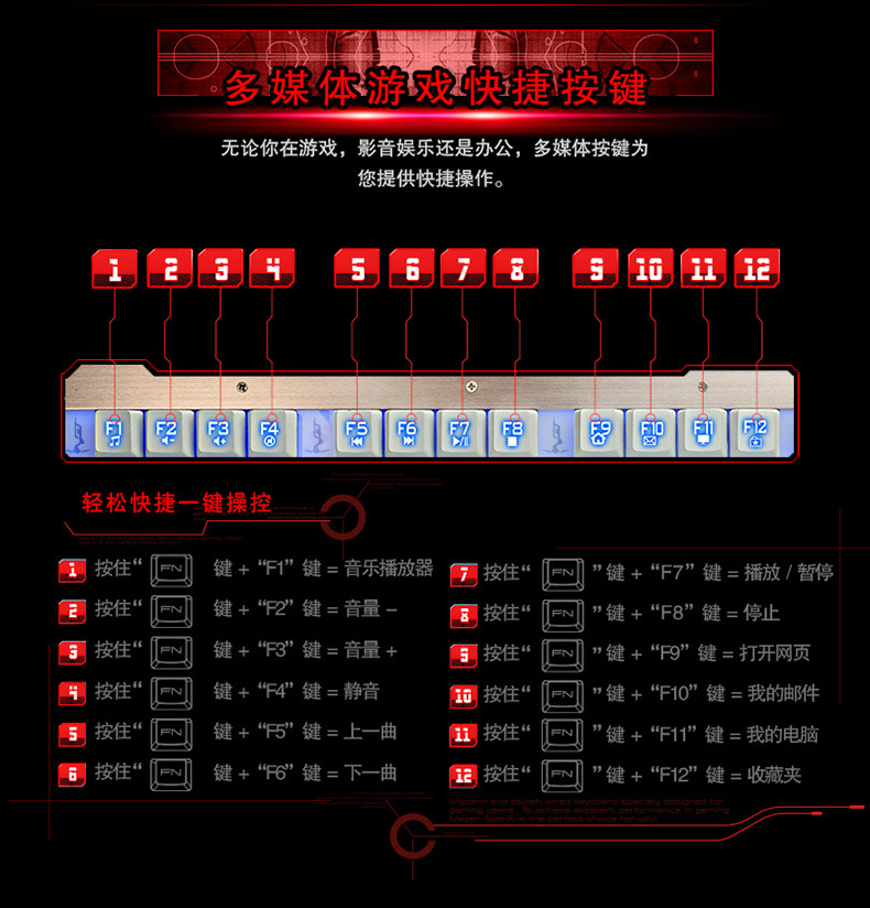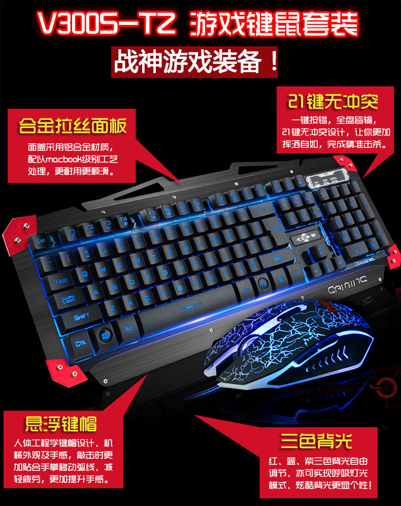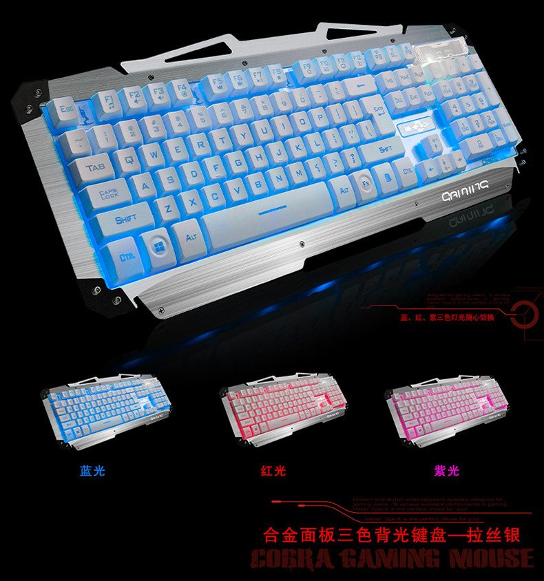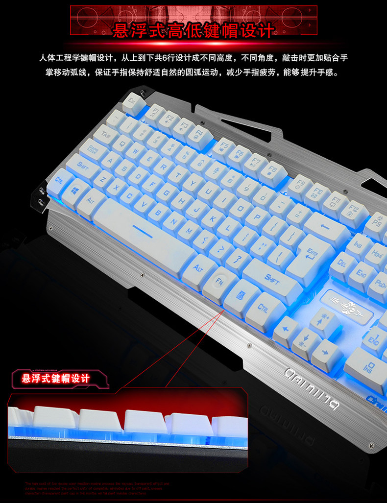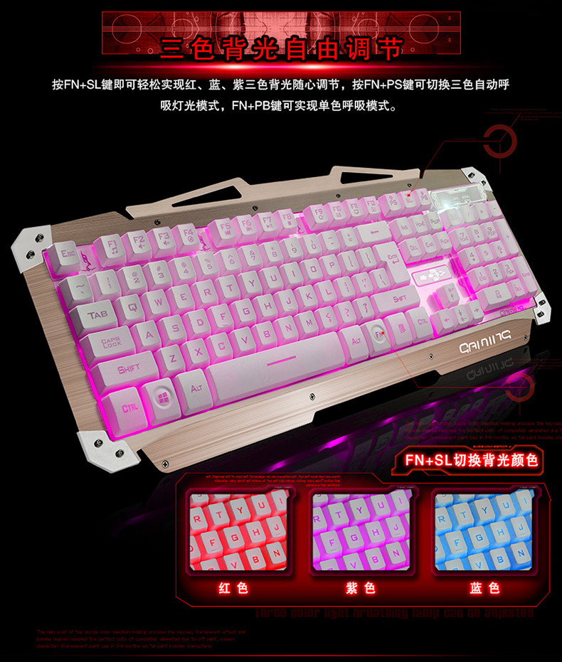 炫酷三色背光 金属拉丝面板 悬浮键帽 机械手感