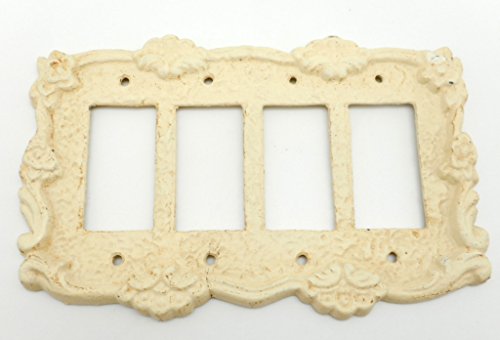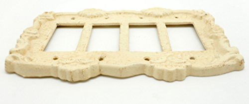 Studio : VIPSSCI Publisher : VIPSSCI Binding : Baby Product Product Description Cast iron quad GFI toggle switch plate cover. Victorian floral design with an antique white finish. Measures 9.5" W x 6.25" H x .75" L. Each switch plate weighs just over one pound. 0