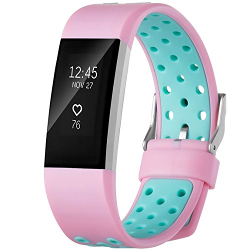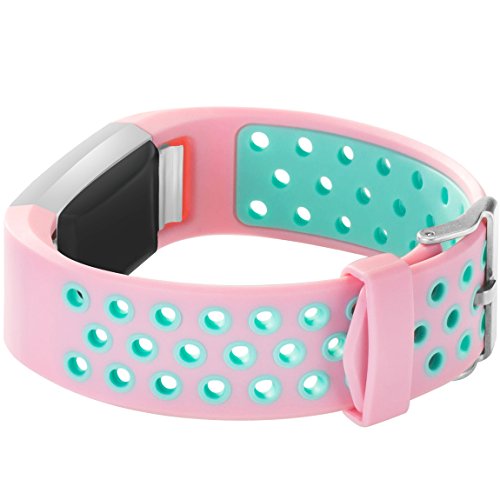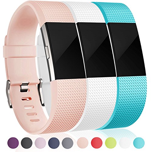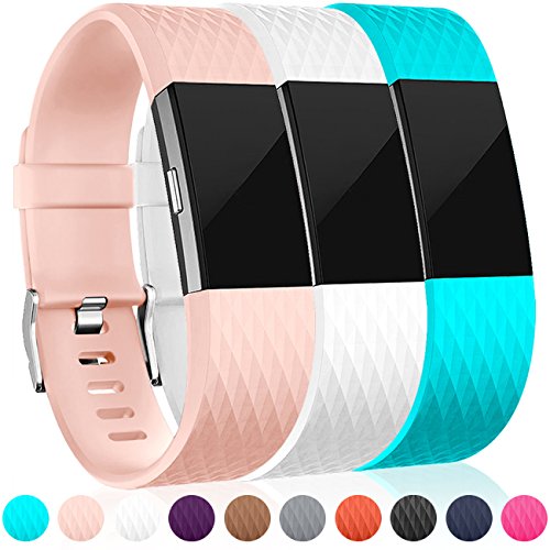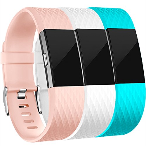 Replacement Bands for Fitbit Charge 2 (3 Pack), Blush Pink, White and Teal, Small