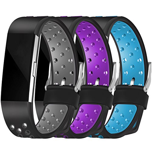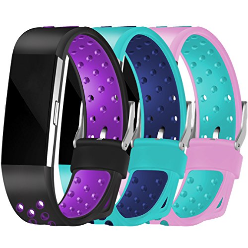 For Fitbit Charge 2 Bands (3 Pack), Black, Blue and Plum, Small