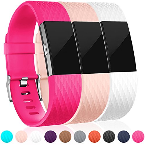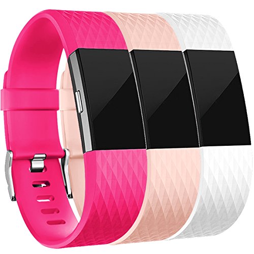 For Fitbit Charge 2 Bands (3 Pack), Rose Pink, Blush Pink and White, Large