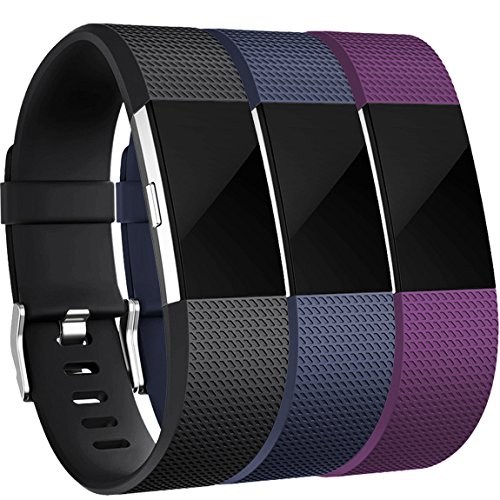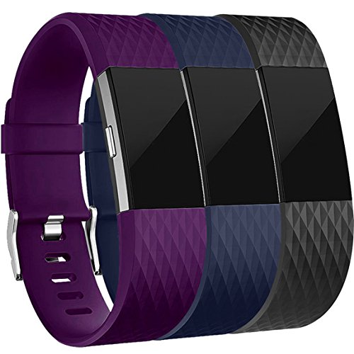 For Fitbit Charge 2 Bands (3 Pack), Black, Blue and Plum, Large