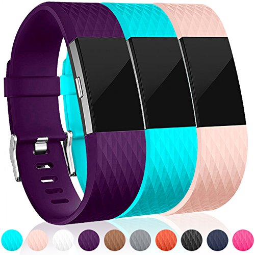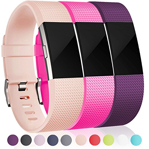 Replacement Bands for Fitbit Charge 2 (3 Pack), Blush Pink, Plum and Teal, Large