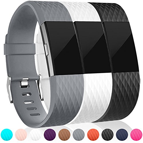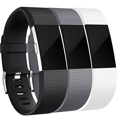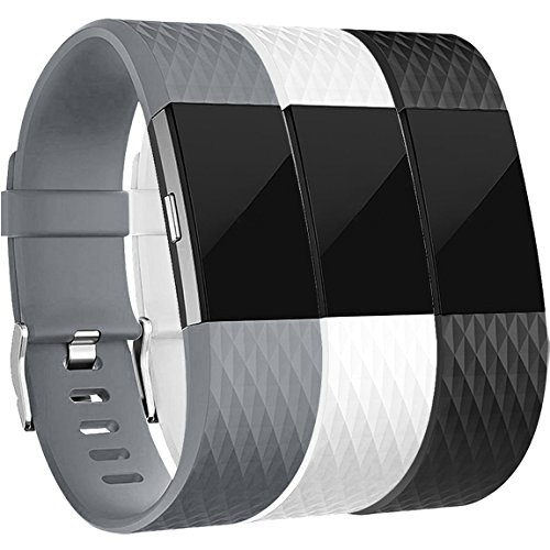 Bands for Fitbit Charge 2 (3 Pack), Black, White and Grey, Large