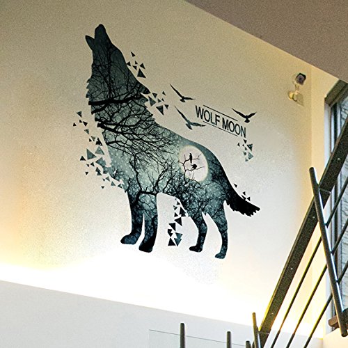 iwallsticker Wall Decals Removable DIY Wall Stickers for Bathroom Kids Room Bedroom Living Room Widown Kitchen Decor (Wolf Moon)