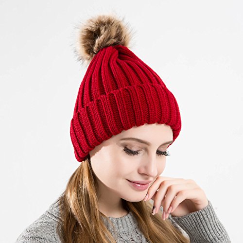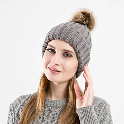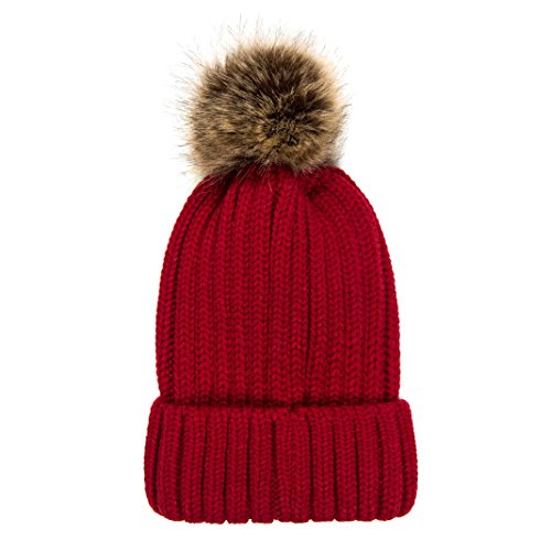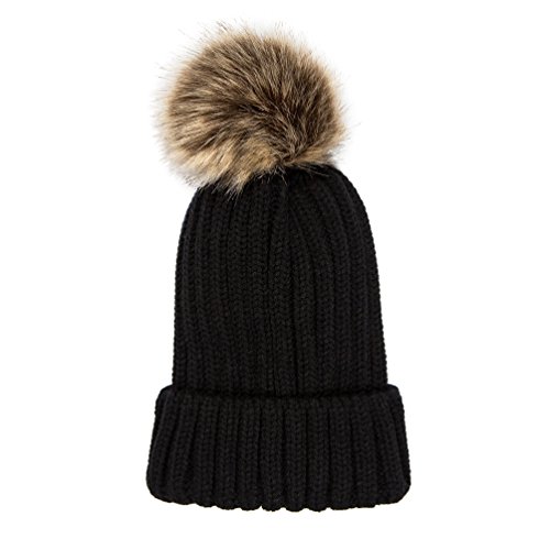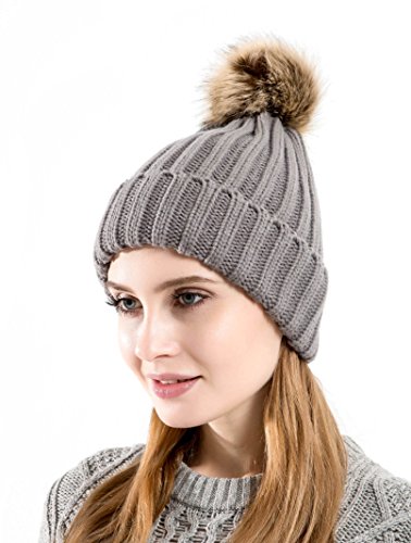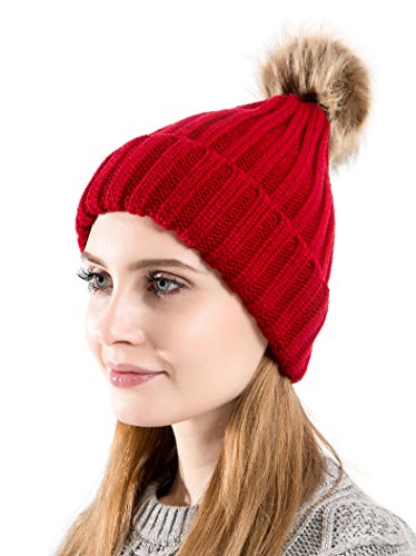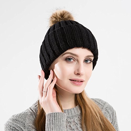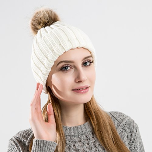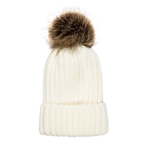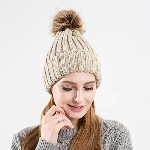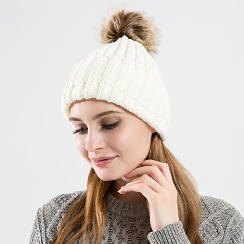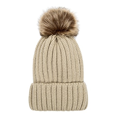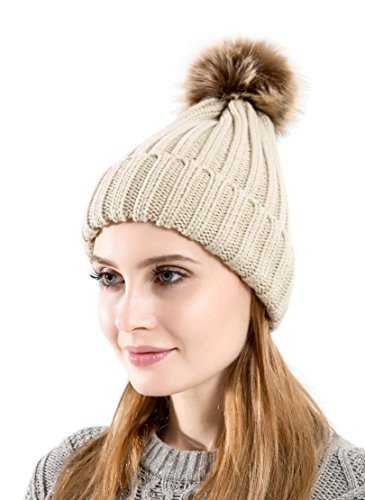 Tossa Emma Women's Knitted Beanie Hat with Pom Pom Winter Cable Knit Beanie Slouchy Soft Girls ...