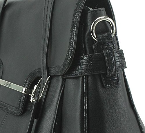 -. Binding : Baby Product -. Color : Black -. Feature : Leather with snake-embossed leather trim; Silver-tone hardware / Flap with magnetic closure; Fabric lining; Logo hang tag / Inside zip & multifunction pockets; Open pocket under flap / Handles with 4.5 inch drop; Longer strap with 12.5 inch for shoulder wear / 15.5 inch (L) x 10.75 inch (H) x 5.5 inch (W) -. Label : -. Manufacturer : -. ProductGroup : Baby Product -. ProductTypeName : BABY_PRODUCT -. Publisher : -. Studio : -. Title : Taylor Leather Marin Flap Satchel, Tote Shoulder Bag Handbag Color Black 26781