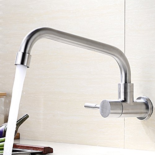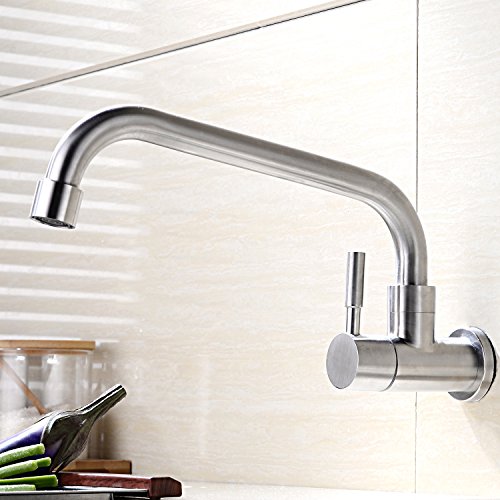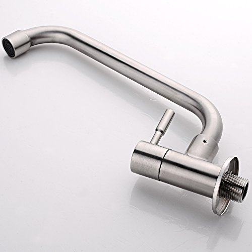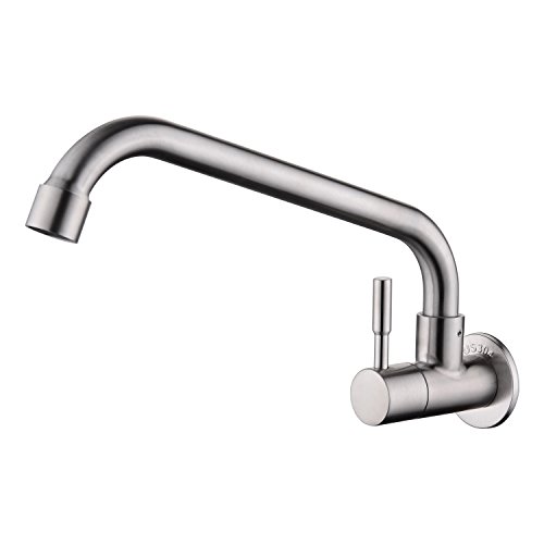 DuranRyan SUS304 Stainless Steel Cold Faucet Single Lever Kitchen Faucet Lead-Free Wall Mount G 1/2 Male Connection, Brushed
