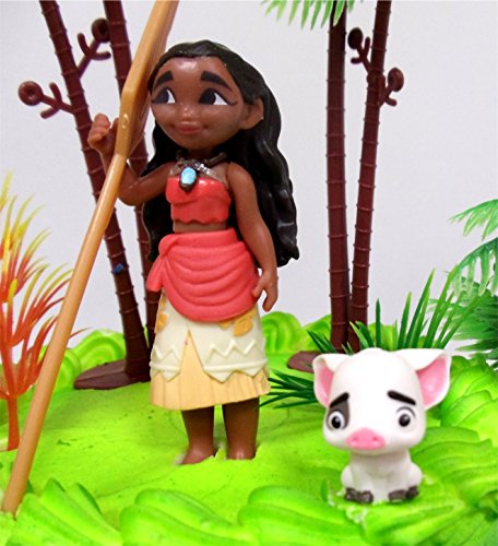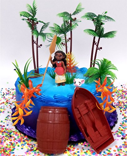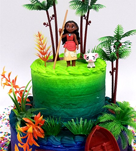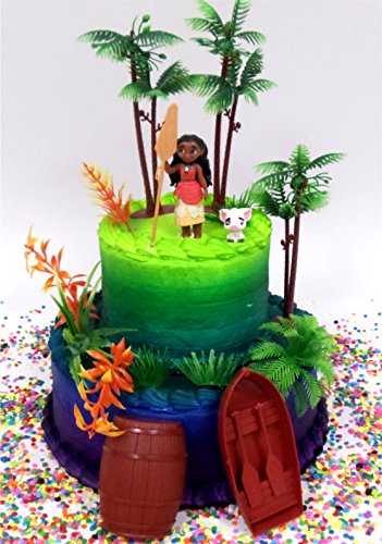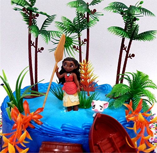 MOANA Tropical Themed Moana Birthday Cake Topper Set Featuring Moana Figure and Decorative Accessories