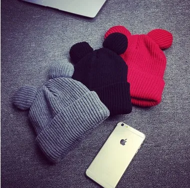| [해외]2016 가을 겨울 새로운 브랜드 여성 니트 비니 모자 새로운 패션 고양이 귀 여성의 모자 니트 모자 따뜻한 Skullies Gorros |