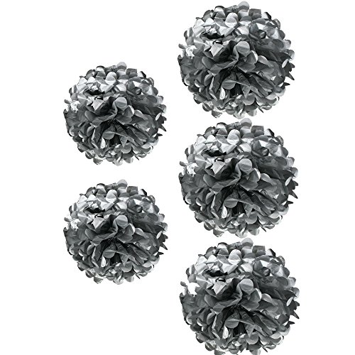 Fonder Mols® Pack of 5 10" and 14" Silver Tissue Paper Pom Poms Flower Ball Wedding Bridal Shower Party Decoration
