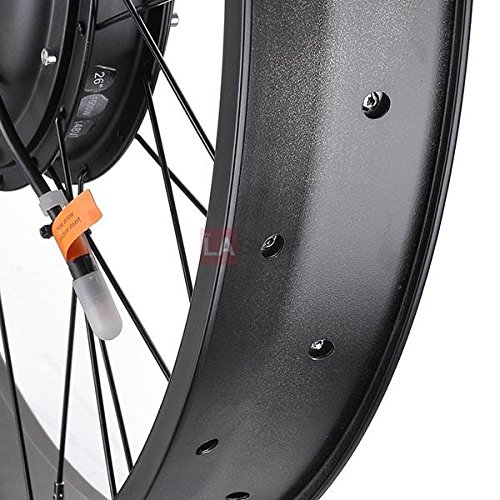 Features: *1. The kit includes motorized wheel (not inculdes the tire), motor controller, speed throttle, power brake lever, wire harness, Pedal assist sensor,charger,battery bag *2. Quiet and reliable brushless gearless hub motor *3. Motor specifications: 48V / 1000W / 470RPM *4. High motor efficiency: 80% *5. Motor diameter: 245mm *6. Rim: width 3 1/4" (8.3cm) *7. Tire: width 4" (not inculdes the tire) *8. The motor dropout spacing is 135mm *9. Brushless Front Hub Motor mounted 26" fat tire single wall aluminum rim(rim width is 3 1/4") *10. Thumb throttle with 3 LEDs indicator lights *11. Applicable Bike:Fat Tire Electric Bike(Not suit for other bike) *12. Applicable Tire:26"x4" *13. Hub size:22-1/2"