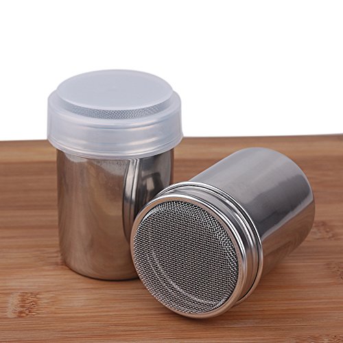 LOHOME® Stainless Steel Fancy Coffee Dredger Cocoa Powder Shaker with Fine-mesh Lid & Translucent Plastic Cover for Baking & Cooking At Home / Restaurant (2-Pieces)