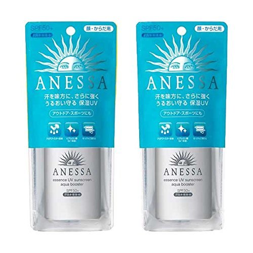 -. Binding : Misc. -. Brand : Anessa -. EAN : 4902121403097 -. Feature : Aqua Booster; new technology that strengthen ultraviolet light barrier when sunscreen touch sweat or water / Super Water Proof: water resistance goes through 80 minutes water test / Can be removed with soap easily,and Great performance for sea bathing, pool, and sports -. IsAdultProduct : 0 -. Label : Shiseido -. Manufacturer : Shiseido -. MPN : 0866645 -. PackageQuantity : 1 -. PartNumber : 0866645 -. ProductGroup : Beauty -. ProductTypeName : BEAUTY -. Publisher : Shiseido -. Studio : Shiseido -. Title : 2 Bottles of Shiseido Anessa Essence UV Sunscreen Aqua Booster SPF 50+ 60ml 2016 Ver.