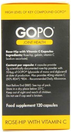 -. Binding : Health and Beauty -. Brand : GOPO -. EAN : 5000477151125 -. Feature : Guaranteed high level of GOPO® -. IsAdultProduct : 0 -. Label : G R Lane Health Products Ltd -. Manufacturer : G R Lane Health Products Ltd -. Model : 151 -. MPN : 151 -. PackageQuantity : 1 -. PartNumber : 151 -. ProductGroup : Health and Beauty -. ProductTypeName : HEALTH_PERSONAL_CARE -. Publisher : G R Lane Health Products Ltd -. Studio : G R Lane Health Products Ltd -. Title : Gopo Rose Hip Joint Health Vitamin C Capsules - Pack of 120 -. UPC : 890671365290