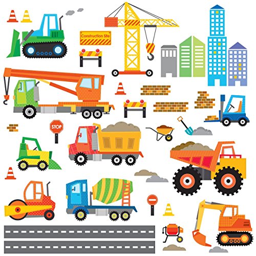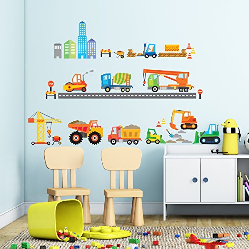 Decowall DW-1612 Construction Site Kids Wall Decals Wall Stickers Peel and Stick Removable Wall Stickers for Kids Nursery Bedroom Living Room