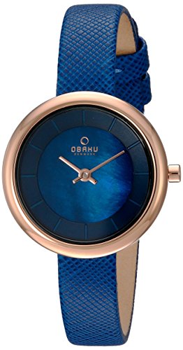 Obaku Women's Quartz Stainless Steel and Leather Dress Watch, Color Blue (Model: V146LXVLRA)