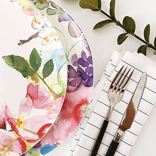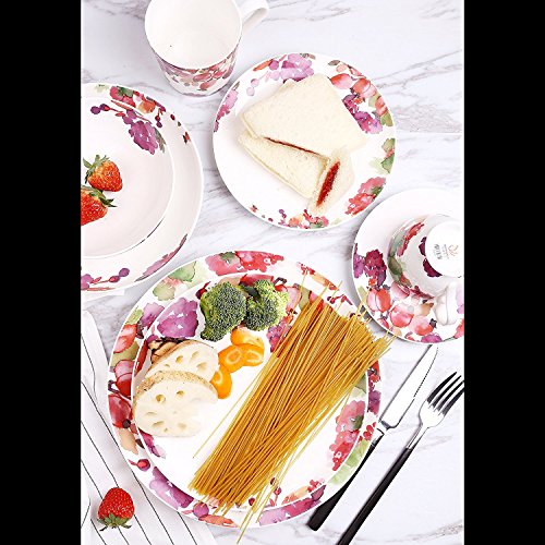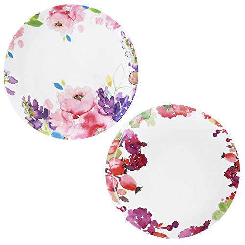 DoubleBlue 10.5" Rounded Dinner Plate (Set of 2) Bone China pastoral for Everyday use - Watercolor Flowers and Fruits, Milticolors