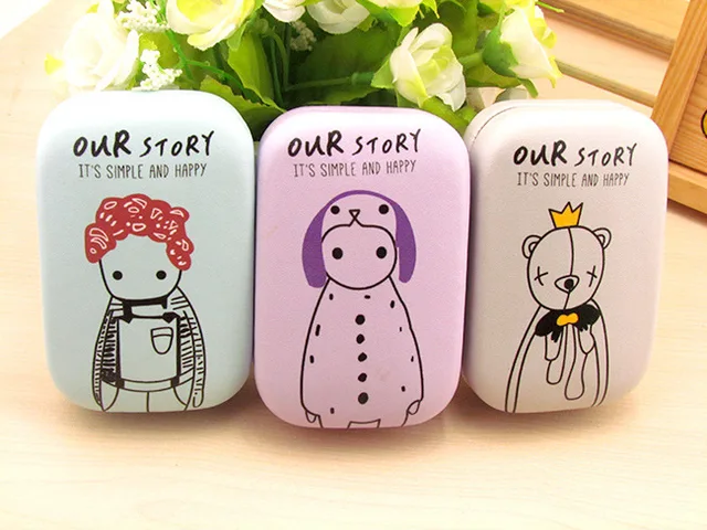 100% 브랜드 새로운 높은 품질사랑스러운 스타일 콘택트 렌즈 케이스, 그들은 도움이 생활휴대용 및 휴대하기 쉬운재질: 플라스틱색상: 6 패턴사이즈: 8.5×5.5×2.5 센치메터
