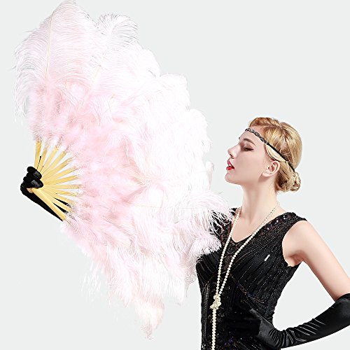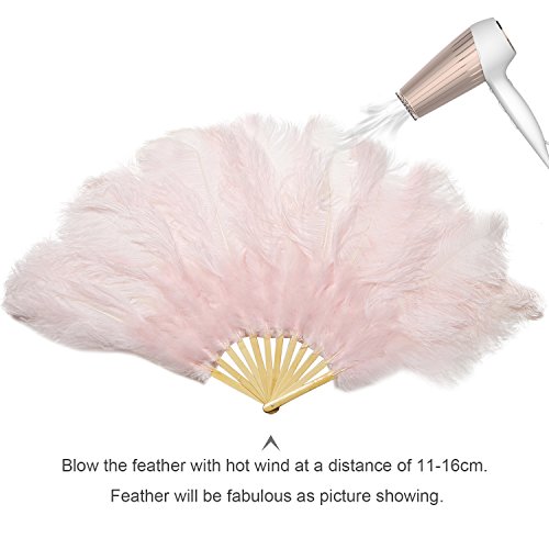 - Material - This feather fan is made of 100% ostrich thick feathers and bamboo staves.