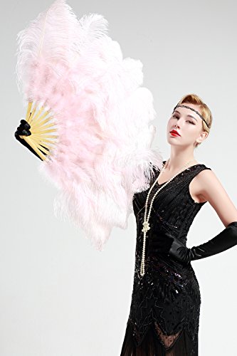 BABEYOND Roaring 20s Vintage Style Ostrich Feather Fan Handheld Decorative Folding Fan Flapper Accessories (Apricot)