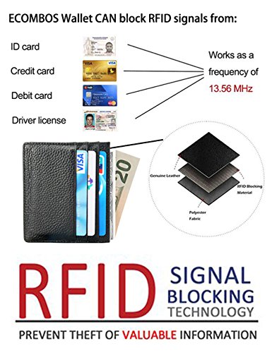 -. Binding : Apparel -. Brand : ECOMBOS -. Department : mens -. Feature : ✔SAFETY&PRIVACY:This RFID Blocking wallet is equipped with advanced unique proprietary blocking material, which blocks RFID signals and protects the valuable private information stored on RFID chips from unauthorized scans. / ✔ ENHANCES PERSONAL SECURITY-Our RFID wallets have been tested for 13.56 MHz Frequency in which our credit cards, debit cards, driver license and ID cards operate. PLEASE BE NOTED THAT the signal of some ID badge, access cards and hotel room cards which operates in 125 KHz, can not be blocked by this wallet. / ✔MATERIAL:Made of 100% pure leather. It's very soft to touch that makes users feel comfortable. / ✔ APPLICABILITY:Be avaliable in inserting plenty of cards simultaneously. / ✔NO HASSLE MONEY BACK GUARANTEE -We know you'll love our RFID wallet as much as we do, If for any reason you're not 100% SATISFIED, let us know and our customer service team will make things right: full refund or a free replacement, whichever you prefer. -. PackageQuantity : 1 -. ProductGroup : Apparel -. ProductTypeName : ACCESSORY -. Size : Small -. Title : RFID Front Pocket Wallet Minimalist Wallet Slim Wallet Genuine Leather