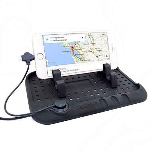 -. Feature : HIGH QUALITY: Made of high-quality silicone skid proof material, Heat-resistant and durable, strong enough to stay up when you moving rubber holder piece to fit your phone and the soft anti-slip silicone do not harm your phone. Environmental friendly and easy using. / SUPER STABLE: The mount mat made by silicone skid proof material, can firmly absorb on dashboard.100% guarantee your phone safety. / TWO ANGLES: Two holder slots allow you to hold your phone both for landscape or portrait mode at 70°and 90° angles, adjust your phone to avoid reflecting light and to operate easily. / MULTIFUNCTIONAL: Unique two cradle docks, it can put two phones on it. And there is a small storage place for small things like keys and cards. You can install the holder on the dashboard of your car or on your desk, portable and practical. / COMPATIBLE WITH: Adjustable design let it can fit almost all smartphone Such as iPhone7/plus, 6 Plus/6s plus, 5 5c 5s 4s,iPad Air, Samsung Galaxy S7,S6,S5,S4,S3 Note 4 3, HTC other mobile phone and navigator.
