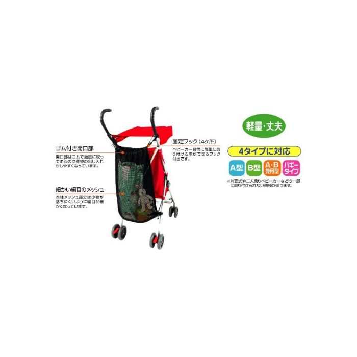 유모차의 수납력 부족을 해소하는 메쉬 백.설치가 간단하고,짐의 출납도 편안하게