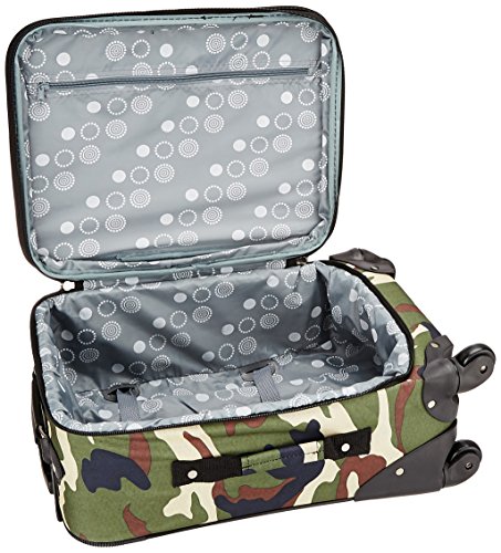 -. Binding : Apparel -. Brand : Rockland -. Color : color -. Department : lage -. Feature : Two large front pockets / Clear skate wheels / Full lining / Expandable / Internal handle -. Label : Fox Lage -. Manufacturer : Fox Lage -. Model : F1051-CAMO -. MPN : F1051-CAMO -. NumberOfItems : 1 -. PackageQuantity : 1 -. PartNumber : F1051-CAMO -. ProductGroup : Apparel -. ProductTypeName : LAGE -. Publisher : Fox Lage -. Size : One Size -. Studio : Fox Lage -. Title : Rockland Lage 19 Inch Patterned Expandable Spinner Carry On