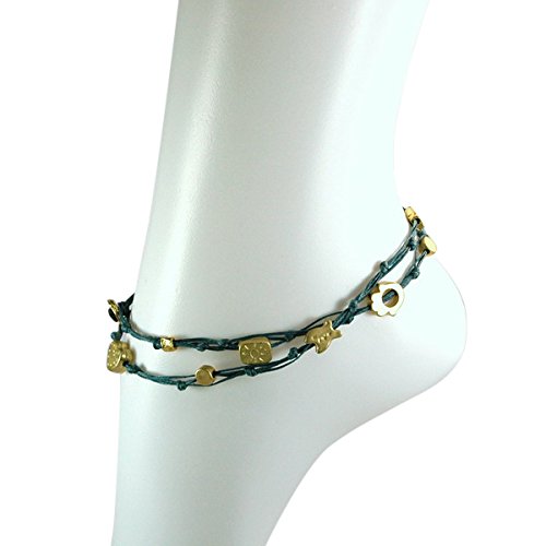 -. Binding : Jewelry -. Brand : MIZZE Made for Luck Jewelry -. Department : womens -. Feature : 10.5" DOUBLE WRAP ANKLET for COMFORTABLE FIT - The double wrapped ankle bracelet is 21" in total length - so size 10.5" and wraps twice around the ankle. / DENIM BLUE HANDMADE WAX WIRE TIES ANKLET - The ties anklet is made with Denim Blue wax cotton (durable) and various charms. / GOOD LUCK and PROTECTION CHARMS ANKLET - The charms include the Hamsa Hand for protection, Fish charm, Heart charm and Star. / QUALITY MATTE GOLD PLATED CHARMS - The charms have a quality matte gold finish plating. / **100% FULL MONEY BACK GUARANTEE - We stand behind our brand and provide a 100% full Money Back Guarantee. If you are unhappy with your Charms Anklet, for any reason please contact us! -. Label : MIZZE Made for Luck Jewelry -. Manufacturer : MIZZE Made for Luck Jewelry -. Model : MZ6009DBG -. MPN : MZ6009DBG -. PartNumber : MZ6009DBG -. ProductGroup : Jewelry -. ProductTypeName : FASHIONNECKLACEBRACELETANKLET -. Publisher : MIZZE Made for Luck Jewelry -. Studio : MIZZE Made for Luck Jewelry -. Title : 10.5" Denim Blue & Gold Double Wrap Ankle Bracelet (Anklet) with Protection Charms