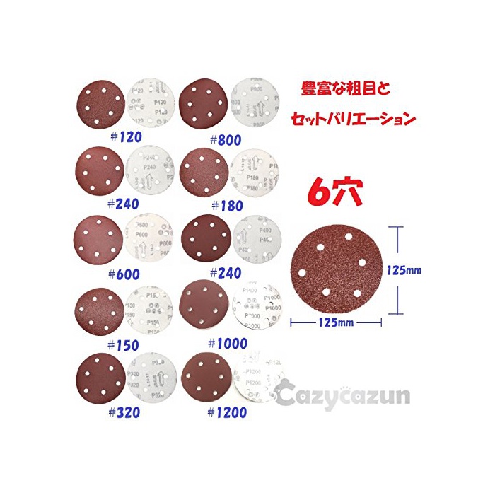 원본상품명:(Cazycazun) ダブル アクション サンダ 用 マジック ペパ 磨 やすり 125 mm 6穴 50 100 枚 セット