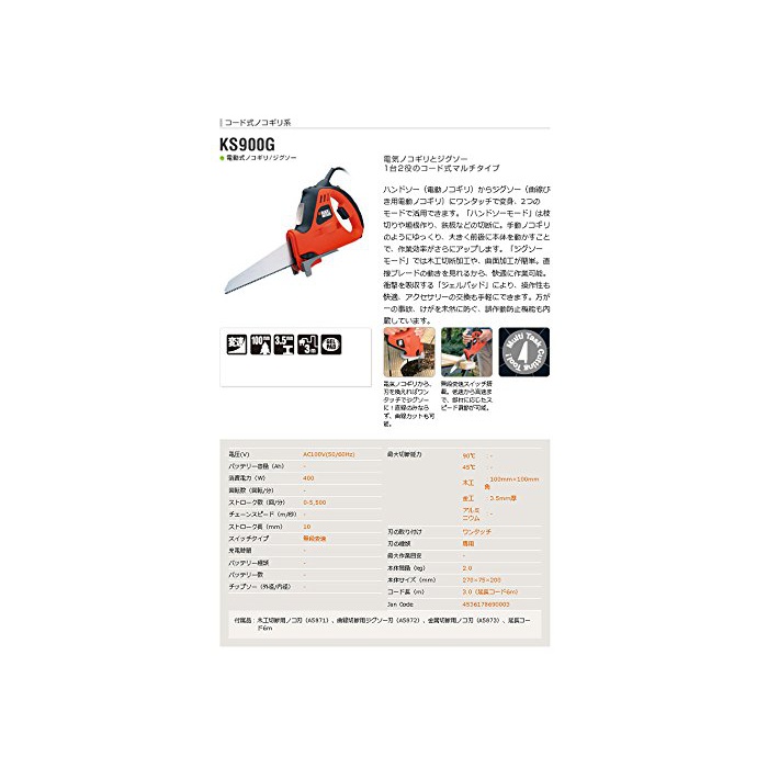 원본상품명:ブラックアンドデッカ(BLACK+DECKER) コド式 電動式ノコギリ/シグソ