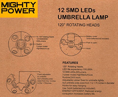 - SUPER BRIGHT: Featuring the latest in LED technology, SMD LED. Not like other umbrella lights on Amazon, this technology delivers outstanding performance and is super long lasting!