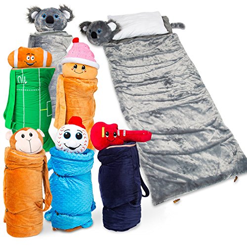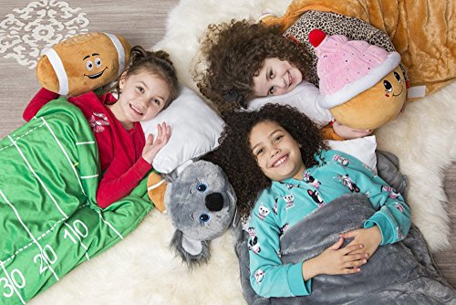 AWESOME, EASY TO USE FEATURES: All this amazing fuzzy goodness might sound like a lot of things at first. But our travelling kit is designed in a smart way that allows for all the contents to be rolled up into a compact backpack within the sleeping bag! It’s so easy, that your kids will enjoy doing their own packing! And while in backpack form, your kid can easily access his/her things without unrolling the sleeping bag!