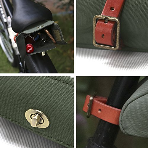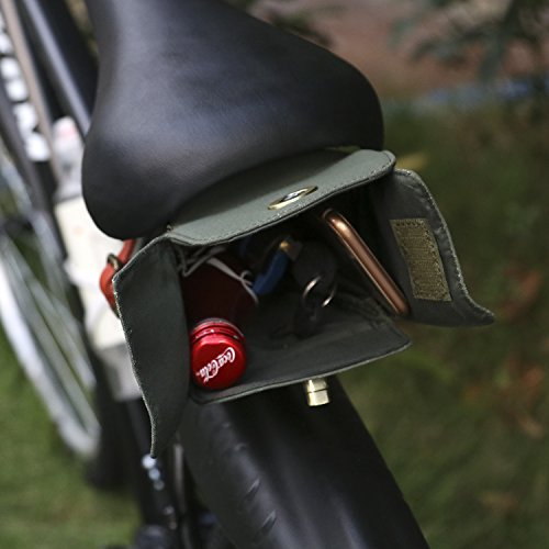 Tourbon Canvas and Leather Strap-On Bike Saddle Bag Bicycle Seat Pack Bag 1.This bicycle bag has plenty of room to storage your daily things