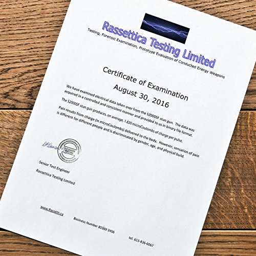 EXTREME STOPPING POWER! This tactical and strong pain-inducing stun gun has an impressive 1.820 µC charge (intolerable pain)—reliable protection when you need it most! Independently tested by Rassettica Testing Ltd [see exam certificate on left]
