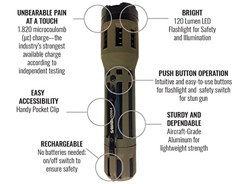 SABRE Tactical Stun Gun—One of the Industry’s Strongest—Powerful 120 Lumen Flashlight with Holster—Life Time Warranty & Training Video Included!
