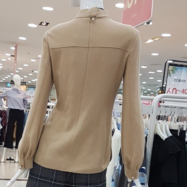 블라우스처럼 단정한 베이지티셔츠네요살짝 벌룬소매단에 여성스럽고 우아해용앞다트선과 잡히는 허리선에 날씬하구요폭닥한 두께감에 지금부터~~단품,추운날 아우터안에 코디도 좋아요살짝올라오는 목선은 부담스럽지않아용