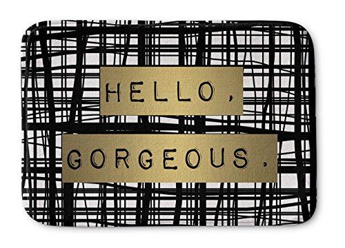 KAVKA Designs Hello Gorgeous Memory-Foam Bath Mat, (Black/White/Gold) - INSPO Collection, Size: 24x36x0.75 - (PLUAVC2601SUML)
