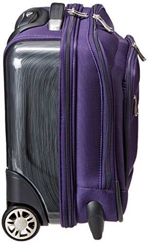 -. Feature : Deluxe lightweight hybrid construction with double spinner wheel system for exceptional 360 degree mobility / Double spinner wheel system for exceptional 360 degree mobility and large gusseted external pocket allows for last minute packing without opening your suitcase / Suitor system with any-hanger clip and adjustable padded tie-down strap / Easy grip pull handle system / Dimensions - 16 inch W x 15.5 inch H x 8 inch D, Weight: 6.2 lbs