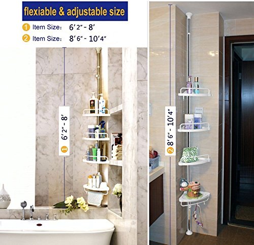Alice Constant Tension Shower Caddy Pole, Commecial Grade Rustproof Corner Rack - Ivory