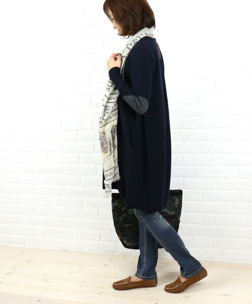 iliann loeb(イリアンローブ) ウール バックファスナー 肘パッチ配色 ニットワンピース・184-198