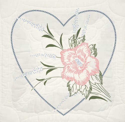 Fairway 92399 Quilt Blocks, Heart and Flower Design, White, 6 Blocks Per Set