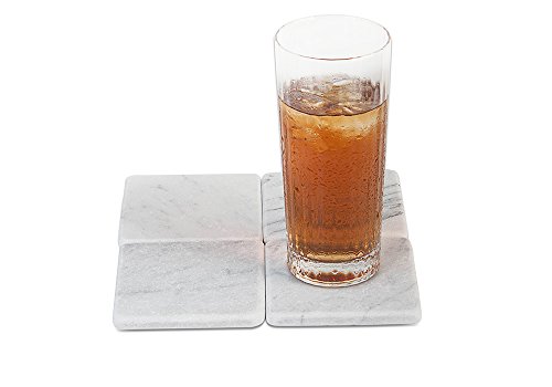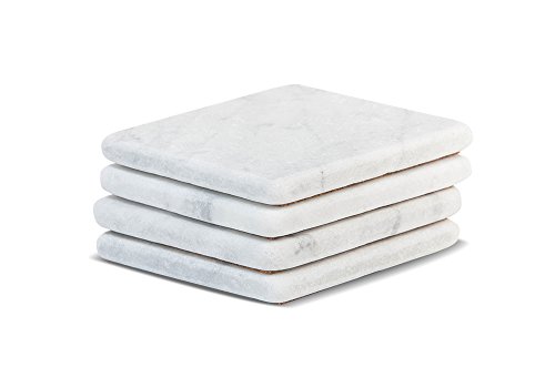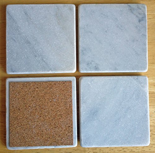Marble Coasters – White Carrara Marble Stone Coasters with Cork Backing Set of 4