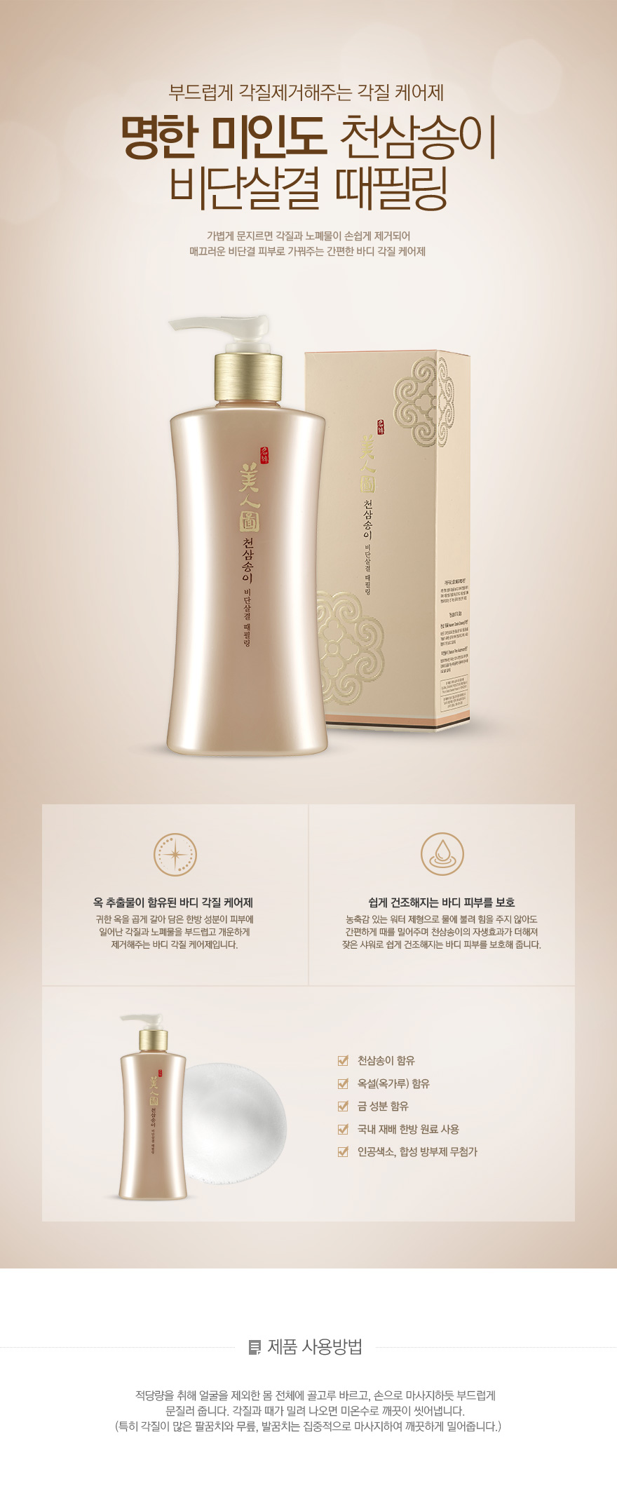 Take an appropriate amount, apply evenly to the whole body except the face, and rub it like a massage by hand.