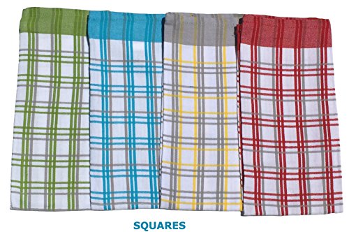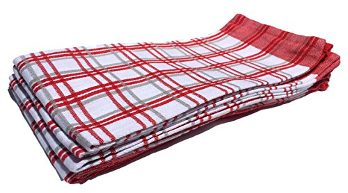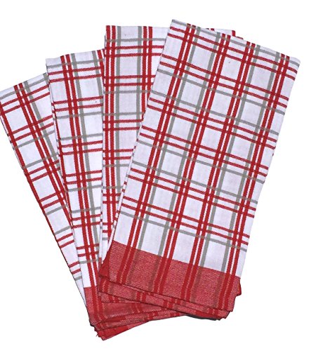 Egyptian cotton Bistro Towels, Dish Towels For Kitchen 100% Cotton Tea Towel, Made in Egypt, 20 x 28 in, Set of 4 (RED, SQUARES)