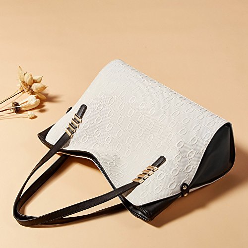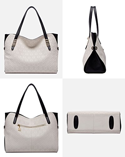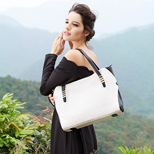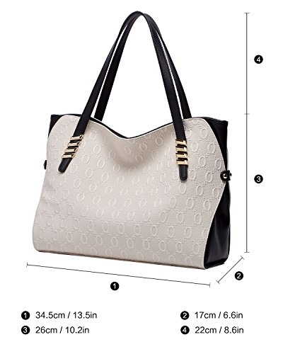 - Material:Genuine cow Leather + Synthetic leather fabric with durable antioxygenic hardware,waterproof and wear resistant.Same stitching matches the same color of purse.Smooth and durable polyester lining,Letter print.Elegant Top handle satchel handbag Shoulder bag.