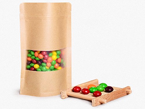 Built-in rectangular window, zip lock, and tear notch. Pouches are great for packaging and displaying products (e.g. baked goods, confections, coffee, tea, snacks, and much more). Perfect for selling your goods to customers.